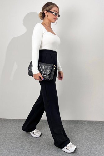 • Spodnie damskie z wysokim stanem, wykonane z krepy, z kieszeniami i zapięciem na rzep.