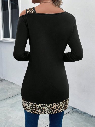 • Damska bluzka wiskozowa z jednym rękawem, odkrytymi plecami i długim rękawem, ze wzorem w panterkę.
