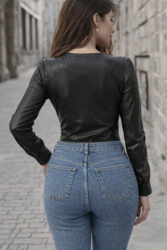• Body damskie ze skóry z długim rękawem i głębokim dekoltem w serek