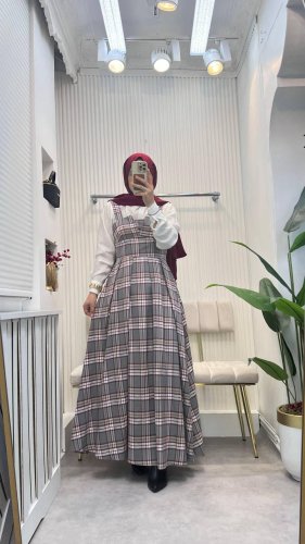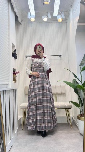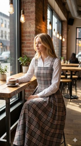 • Sukienka damska na ramiączkach, w kratę, z detalami