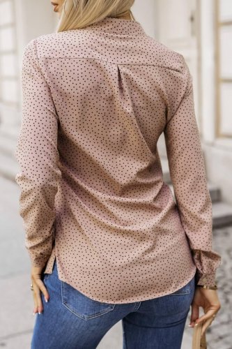 Bluzka damska ze stójką, metalowymi guzikami i tkaniną Moscrepe