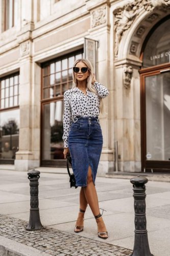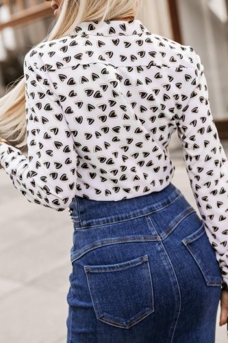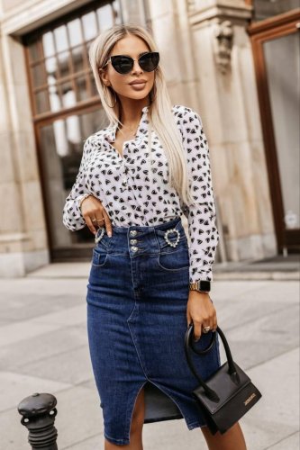 • Bluzka damska ze stójką, metalowymi guzikami i tkaniną Moscrepe