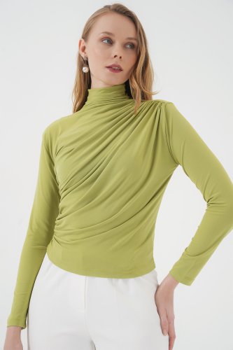 • Bluzka 925 z marszczeniami i piaskowym wzorem – ciemnozielona