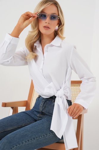 Koszula z długim rękawem i zapięciem na guziki 20325 - biała