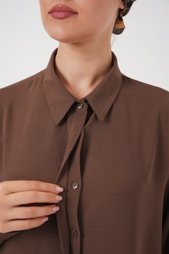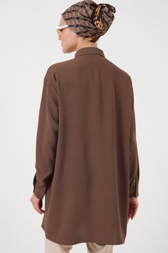 Długa tunika koszulowa 5945 - brązowa