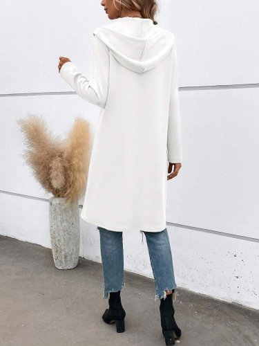 Damska kurtka typu scuba midi z długim rękawem i kapturem, zapinana z przodu na zamek błyskawiczny