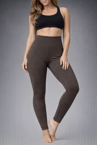 Nonofit Legginsy z wysokim stanem i bardzo dobrym wyprofilowaniem z lycry z wzorem z przodu, z tyłu i na kostce – brązowe