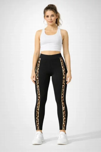 Leginsy Lycra z nadrukiem w panterkę po bokach – czarne