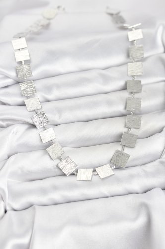 • Naszyjnik damski w kolorze srebrnym, model kwadratowej płytki