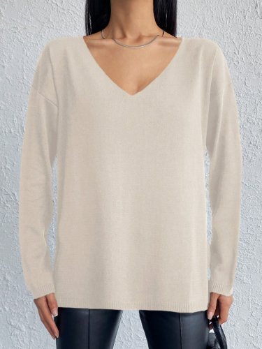 • Bluzka damska dzianinowa z długim rękawem i dekoltem w serek