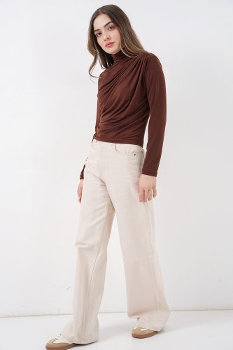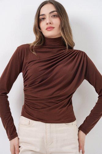 • Bluzka 925 z marszczeniami i piaskowym wzorem – ciemnobrązowa