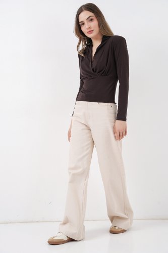 • Bluzka kopertowa z poduszkami na ramionach 942 - brązowa