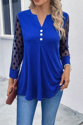 Bluzka damska z długim rękawem, zapinana na guziki, z detalami z tiulu na rękawach, wykonana z wiskozy.
