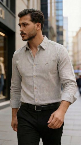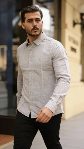 • Męska koszula lniana z długim rękawem