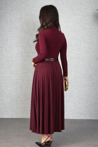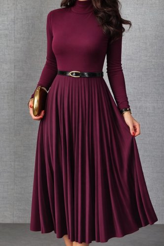 • Damska sukienka plisowana z długim rękawem i golfem bez paska, w kolorze piaskowym