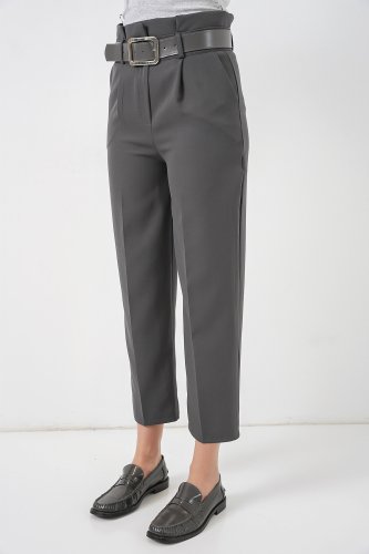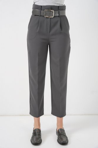 6556 Spodnie materiałowe z paskiem - antracytowe