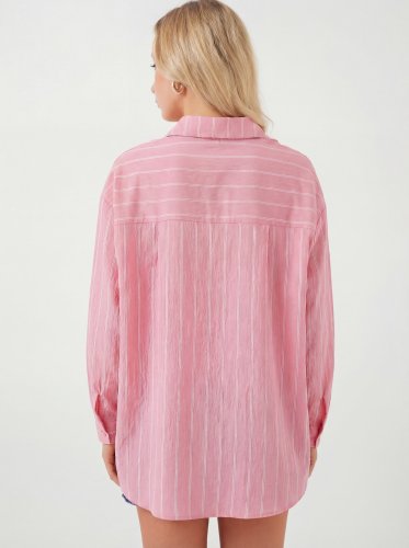 • Koszula w paski oversize 20293 - różowa