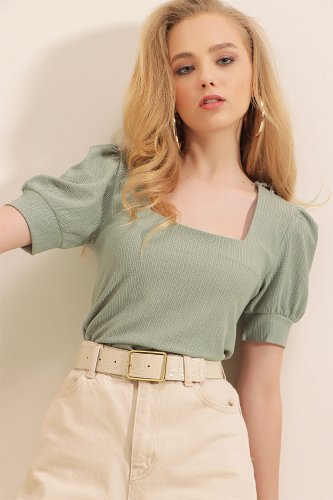 0409 Bluzka dzianinowa z kwadratowym dekoltem – jasnozielona