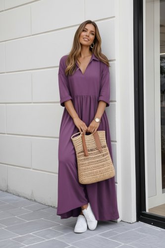 • Damska sukienka aerobin z długim rękawem 3/4, dekoltem w serek i rozcięciem