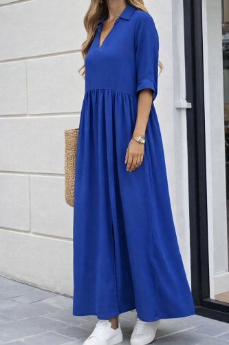 • Damska sukienka aerobin z długim rękawem 3/4, dekoltem w serek i rozcięciem