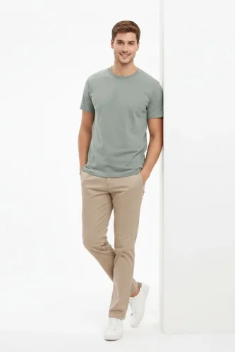 • Męska koszulka z okrągłym dekoltem, regularny krój, prosta bawełniana koszulka casualowa – miętowa zieleń