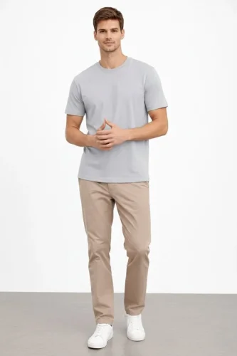 • Męska koszulka z okrągłym dekoltem, regularny krój, prosta bawełniana koszulka casualowa – szara