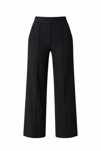 • Spodnie palazzo z wysokim stanem i przeszyciami, szerokie nogawki, z lejącego materiału, na co dzień i do biura – czarne