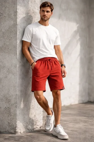 • Męskie szorty tkane Highway, elastyczny pas ze sznurkiem, kieszenie, luźny krój, szorty na co dzień na lato – pomarańczowe
