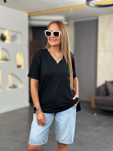 Bluzka damska z krótkim rękawem i dekoltem w serek