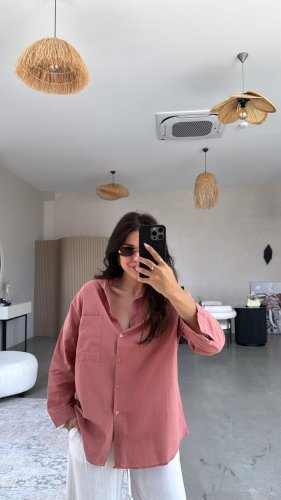 • Koszula lniana damska oversize z jedną kieszenią