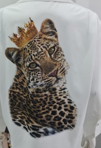 • Koszula damska Jessica z materiału z nadrukiem w panterkę i zdobieniami