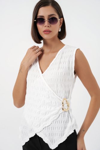 • Bluzka dzianinowa bez rękawów 988 - biała