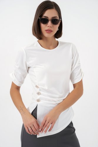 Bluzka Sandy z ozdobnymi guzikami 992 – biała