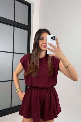 • Kombinezon damski z krótkim rękawem i lekko odkrytymi plecami, wykonany z materiału modalnego