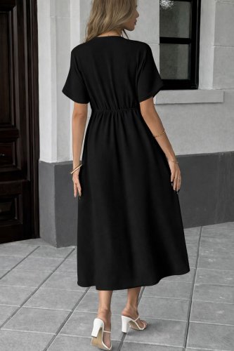 Sukienka damska z materiału aerobin z dekoltem w serek i marszczeniami, wykonana z materiału typu „marshmallow”