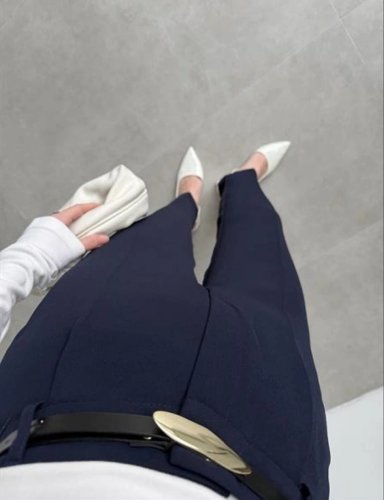 • Damskie spodnie typu hauc z wysokim stanem i paskiem