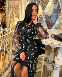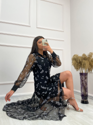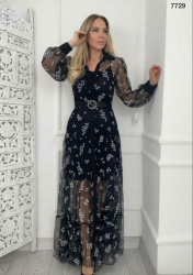 Sukienka z podszewką w kolorze piaskowym i tiulowym wzorem kwiatowym