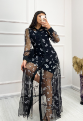 • Sukienka z podszewką w kolorze piaskowym i tiulowym wzorem kwiatowym