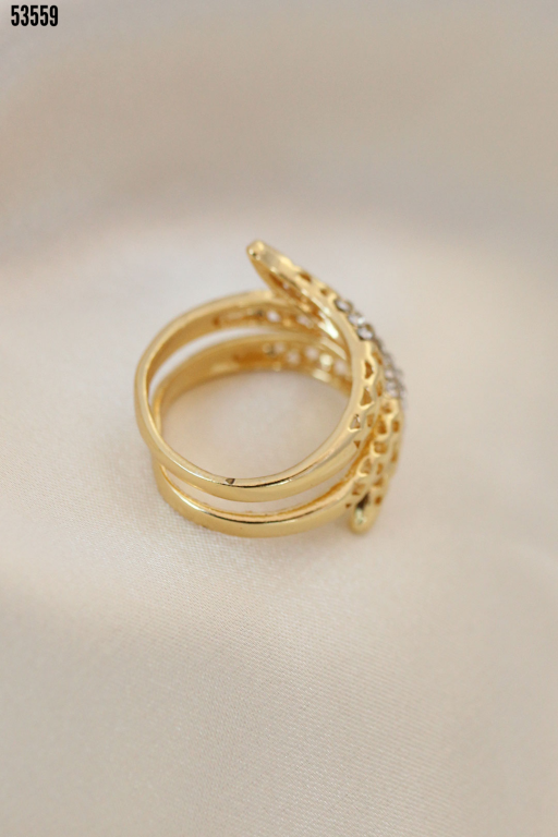 Regulowany złoty metalowy pierścionek z cyrkonią