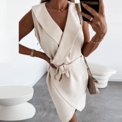 • Sukienka z krepy dwurzędowa, z paskiem