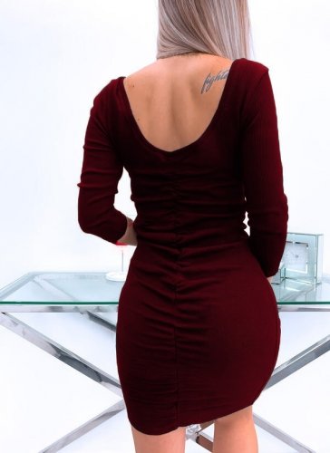 Damska sukienka na ramiączkach z długim rękawem i marszczeniami na plecach
