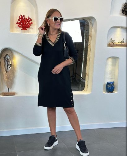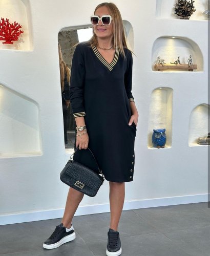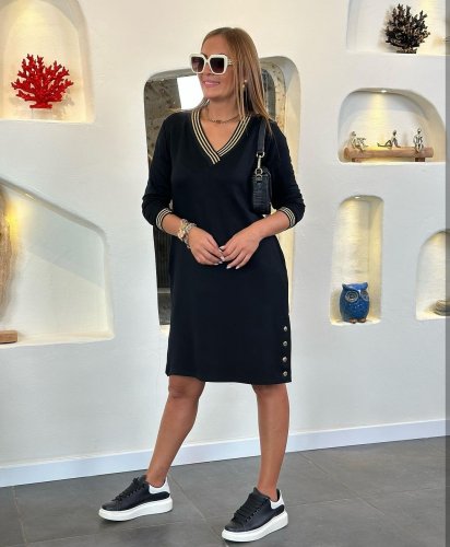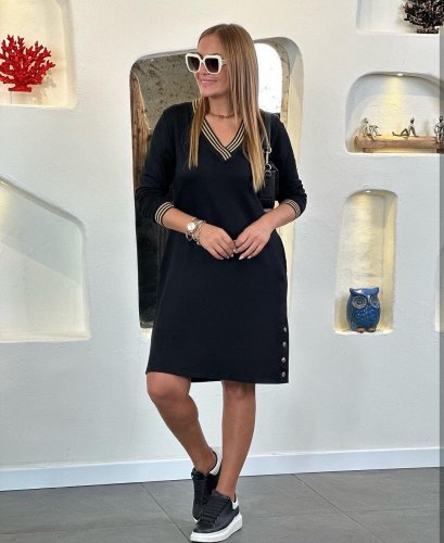 • Damska spódnica z długim rękawem i dekoltem w kształcie litery V, prążkowana spódnica z kołnierzykiem i zatrzaskami. Sukienka z dwiema nitkami